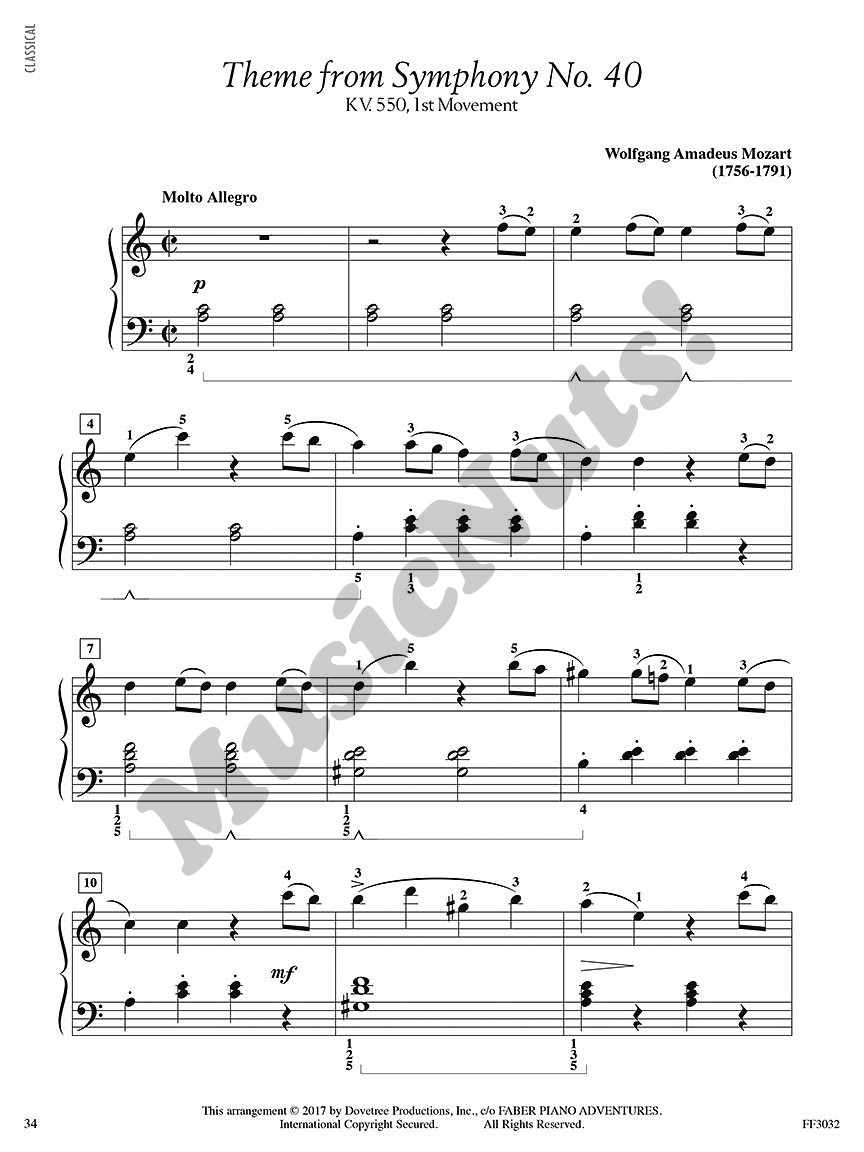 In this inspiring collection, late-elementary to early-intermediate pianists will find appealing arrangements that advance skills while exploring masterworks of Western music. The famous orchestral, keyboard, and operatic repertoire here spans four periods of music history. In the Baroque & Classical section, discover the elegance of Bach, the beauty of Mozart and the passion of Beethoven. Through the pages of the Romantic & Impressionistic section, sample the lyricism of Chopin, the drama of Grieg, and the atmosphere of Debussy. May the melodies of these and many other composers open an enduring world of expression and sound.