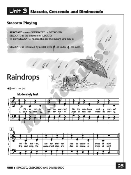 This unique method was designed specifically for young students who are beginning piano study in a group setting. This easy-to-teach beginners course includes all of the most important components to develop comprehensive musicians and performers. CDs and MIDI Disks have accompaniments that range from simple drum patterns to full orchestrations that add musical interest and motivate students.