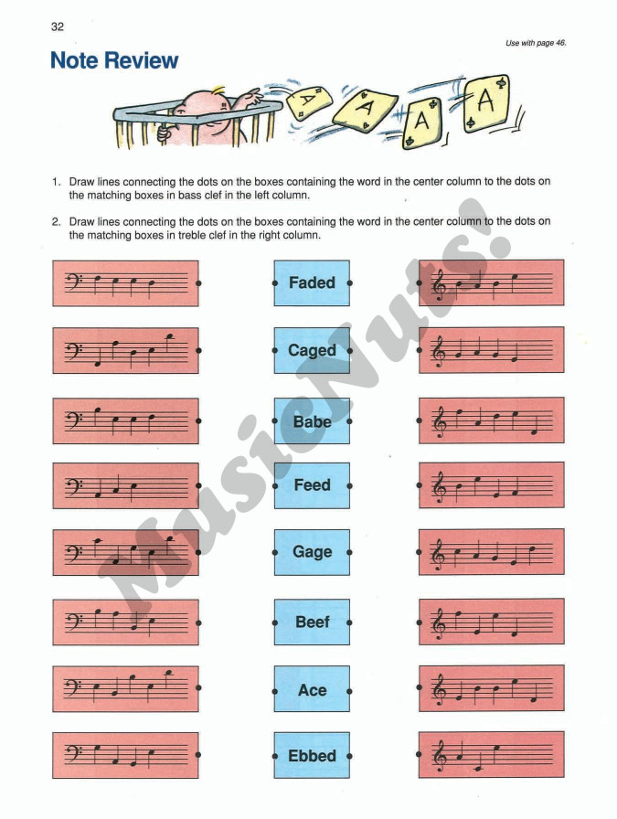 Students needing to review and improve their note-naming and interval-naming skills will benefit greatly from these well-prepared Notespeller Books. Each book provides a variety of written activities that reinforce note reading concepts presented in the Lesson Books. Correlates page-by-page with the Lesson Books, but may also serve as an effective supplement to other piano methods.