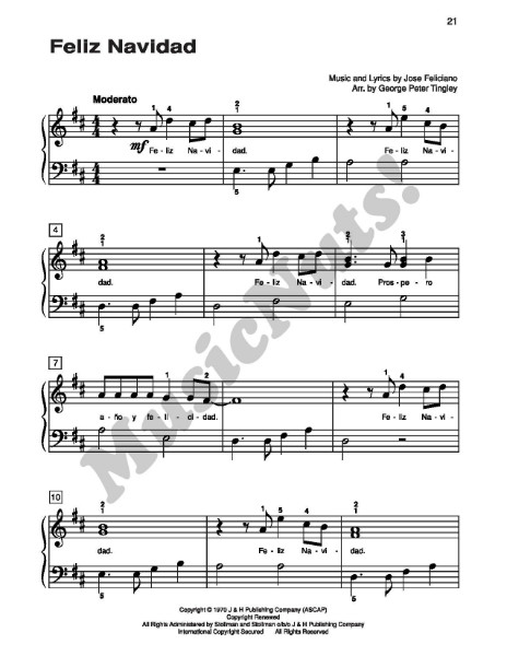 These piano arrangements may be used by students in Level 2 of Alfred’s Basic Piano Library or in the second book of any method. Titles: Feliz Navidad * Frosty the Snow Man * Home for the Holidays * Let It Snow! Let It Snow! Let It Snow! * Mister Santa * Nuttin’ for Christmas * Rockin’ Around the Christmas Tree * Rudolph the Red-Nosed Reindeer * The Chipmunk Song * When Santa Claus Gets Your Letter.