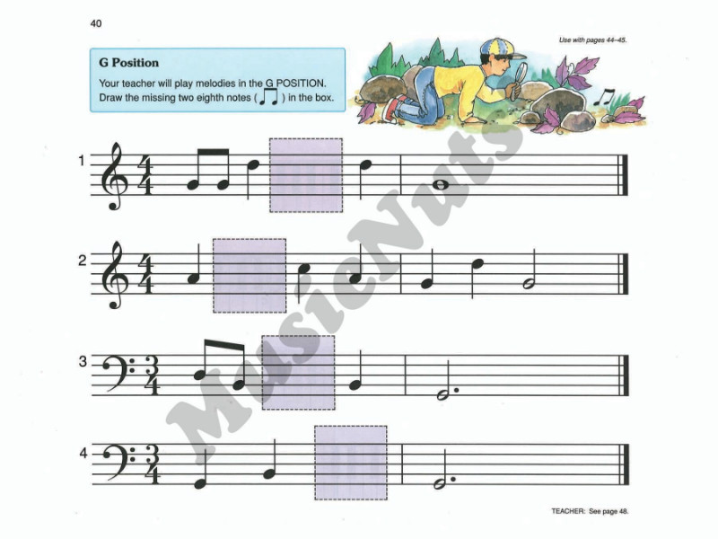 The Activity & Ear Training Books include coloring activities to help students recognize notes, musical symbols, rhythms and more, both aurally and visually. Each activity is carefully designed to encourage teacher/student interaction. Every activity coordinates page-by-page with the Lesson Books.