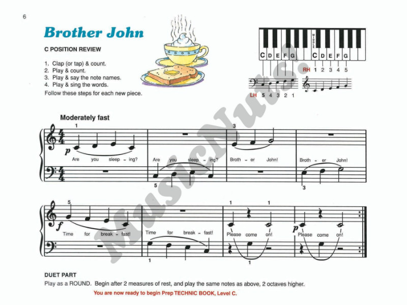 Alfred’s Basic Prep Course, Levels A through F, was written to answer a demand for a course of piano study designed specifically for students who are five years old and up. This course offers a careful introduction of fundamentals, music that fits comfortably under the young student’s normal hand span, plus constant reinforcement, all leading to results beyond those generated by other piano methods. After Lesson Book B, the student may progress to Prep Course, Lesson Book C or choose to go directly into the faster paced Level 1B of Alfred’s Basic Piano Library. The complete Prep Course consists of six books (Levels A through F).