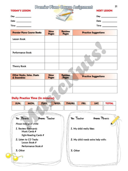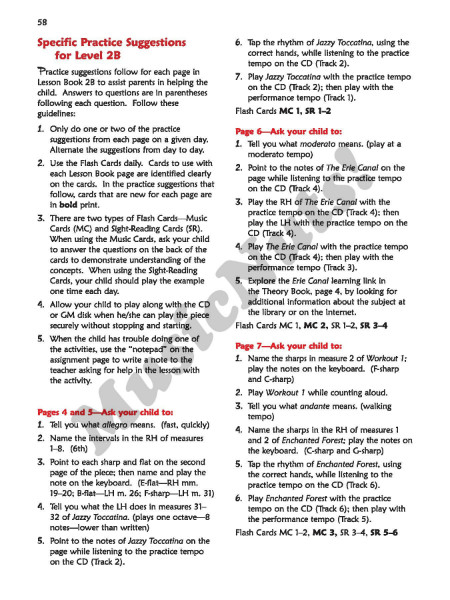 The unique At-Home Book contributes greatly to a student’s success. When used by parents during practice time, it can make a dramatic difference in the student’s musical learning. All parents-with or without musical knowledge-will be able to participate. It’s like having a second teacher at home. Contents include: Assignment Pages, Parent Pages, and an engaging musical adventure story that started in Level 1A and comes to a fun conclusion in Level 2B.