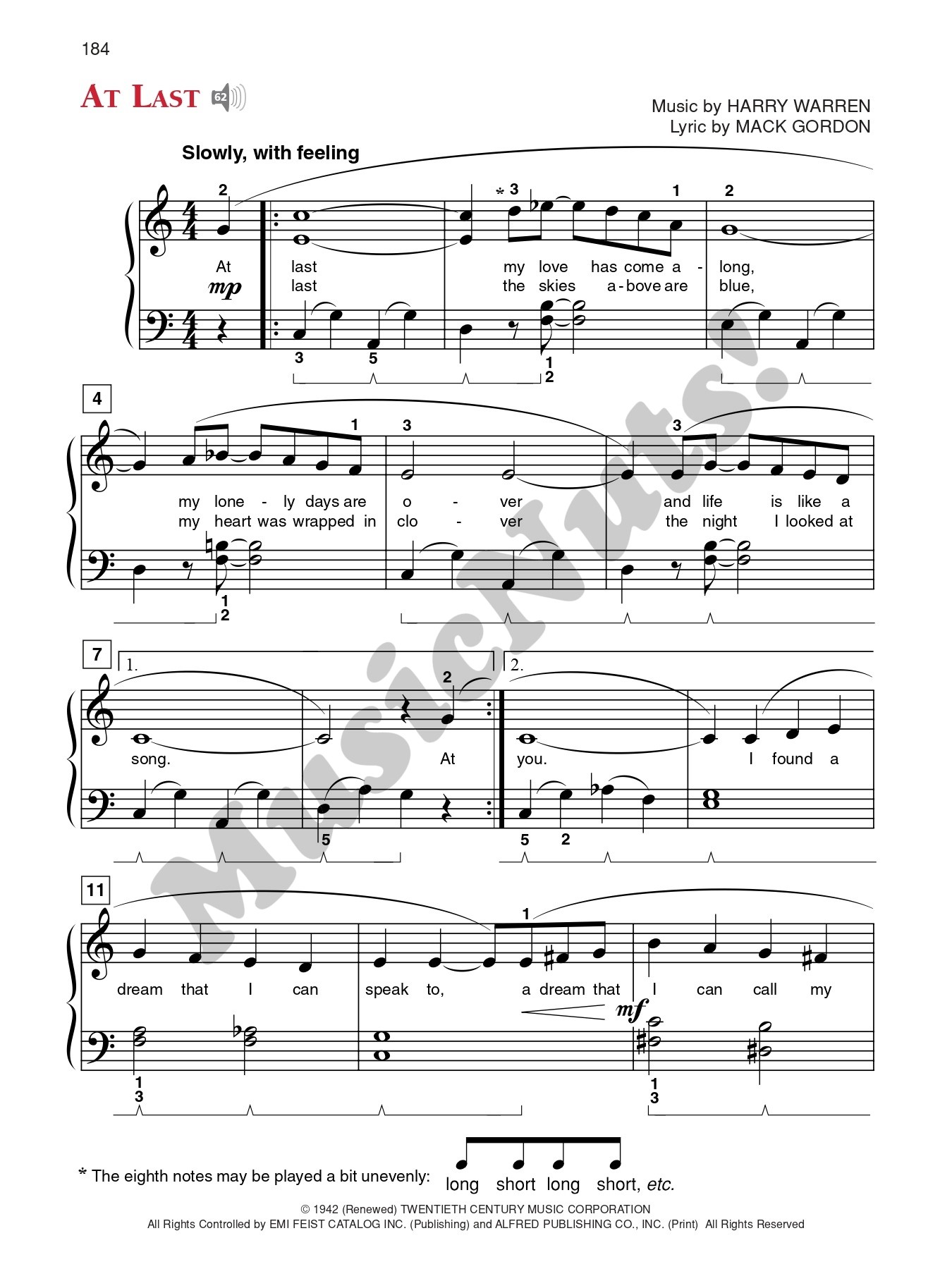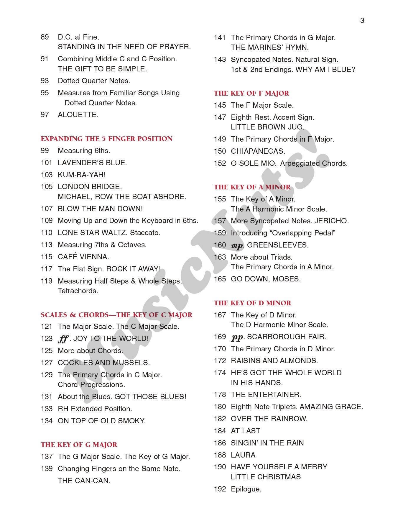 Continuing the incredible popularity of Alfred’s Basic Adult Piano Course, this new book adapts the same friendly and informative style for adults who wish to teach themselves. With the study guide pages that have been added to introduce the music, it’s almost like having a piano teacher beside you as you learn the skills needed to perform popular and familiar music. There are also five bonus pieces: At Last * Have Yourself a Merry Little Christmas * Laura * Over the Rainbow * Singin’ in the Rain. Included is a recording containing the piano part and an engaging arrangement for each of the 65 musical examples.