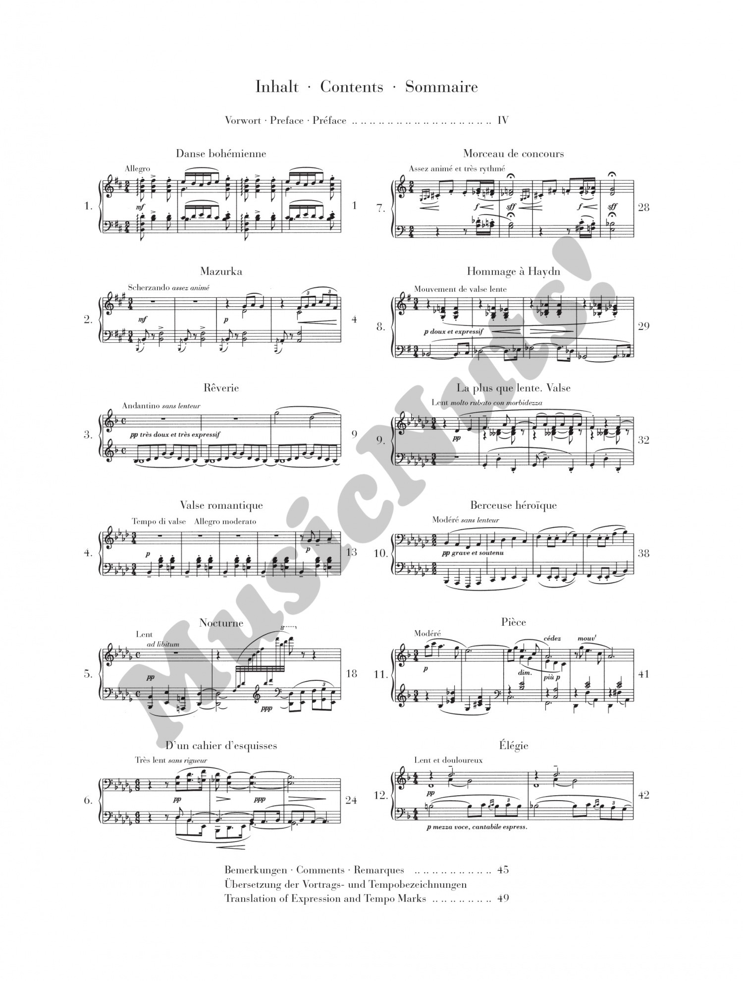 Debussy’s piano cycles and more substantial single pieces are listed as single editions in our catalogue. A further twelve, mostly shorter pieces have been collected in this little volume. The pieces in this edition cover the whole of the composer’s creative life – from the Danse bohémienne by the 18-year-old youth and the demanding, dense D’un cahier d’esquisses (From a sketchbook) to the Élégie that was published in 1916. The volume provides players with an introduction to Debussy’s piano works that is not too difficult, but it also includes pieces for more advanced players. Thus it is warmly recommended for piano teachers.