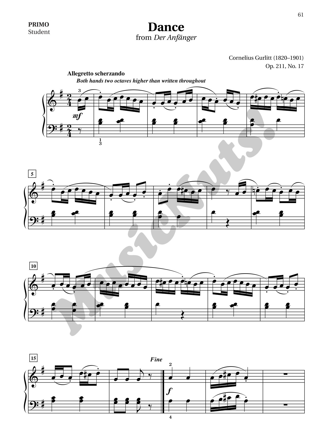 A valuable assortment of teacher/student duets in their original form written by teachers and composers during the 18th and 19th centuries. Arranged in order of difficulty, the student parts are limited to a single five-finger position and fall primarily within the grand staff reading range. Each book includes works by such composers as Diabelli, Gurlitt, Bercucci, Wohlfahrt, Berens, and others.