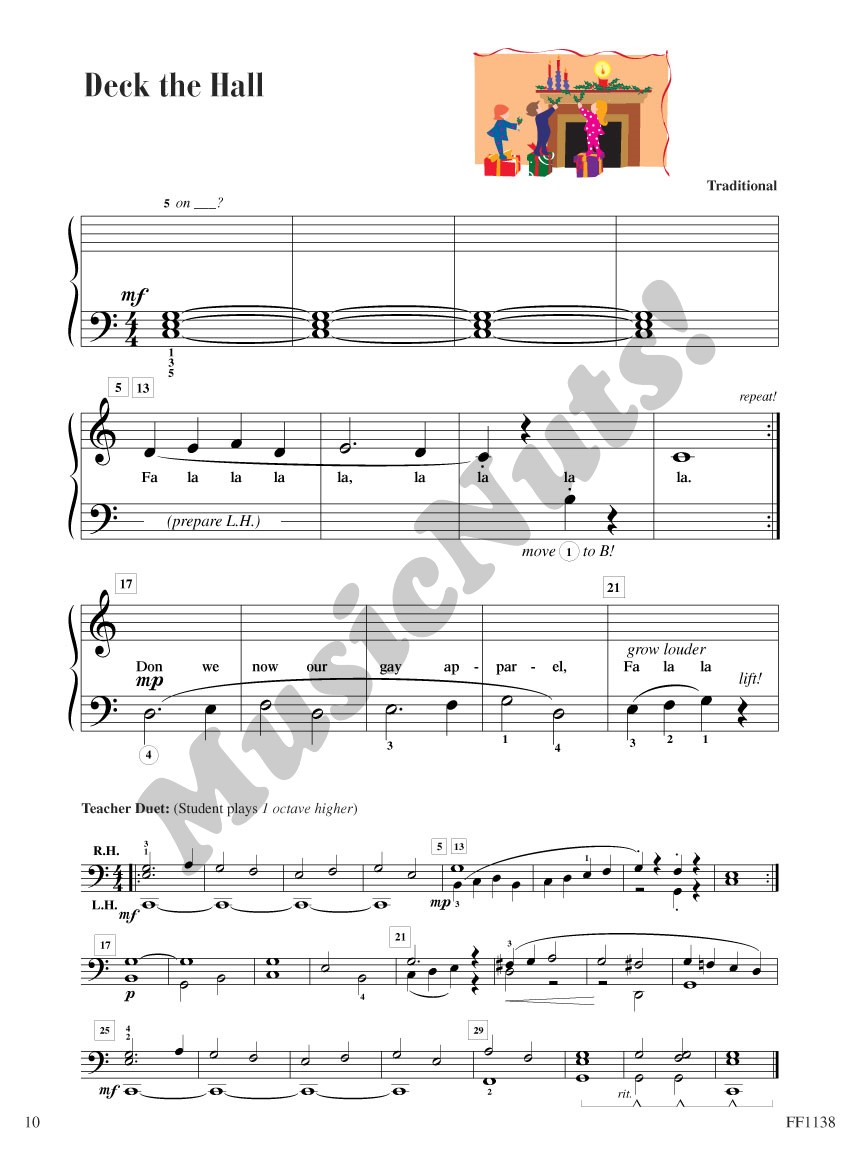 Contents include: Stuffing the Stockings (interval review) • Angels We Have Heard on High • Deck the Halls • Jingle Bells • O Come, All Ye Faithful • O Come Little Children • Up on the Housestep • We Three Kings of Orient Are.