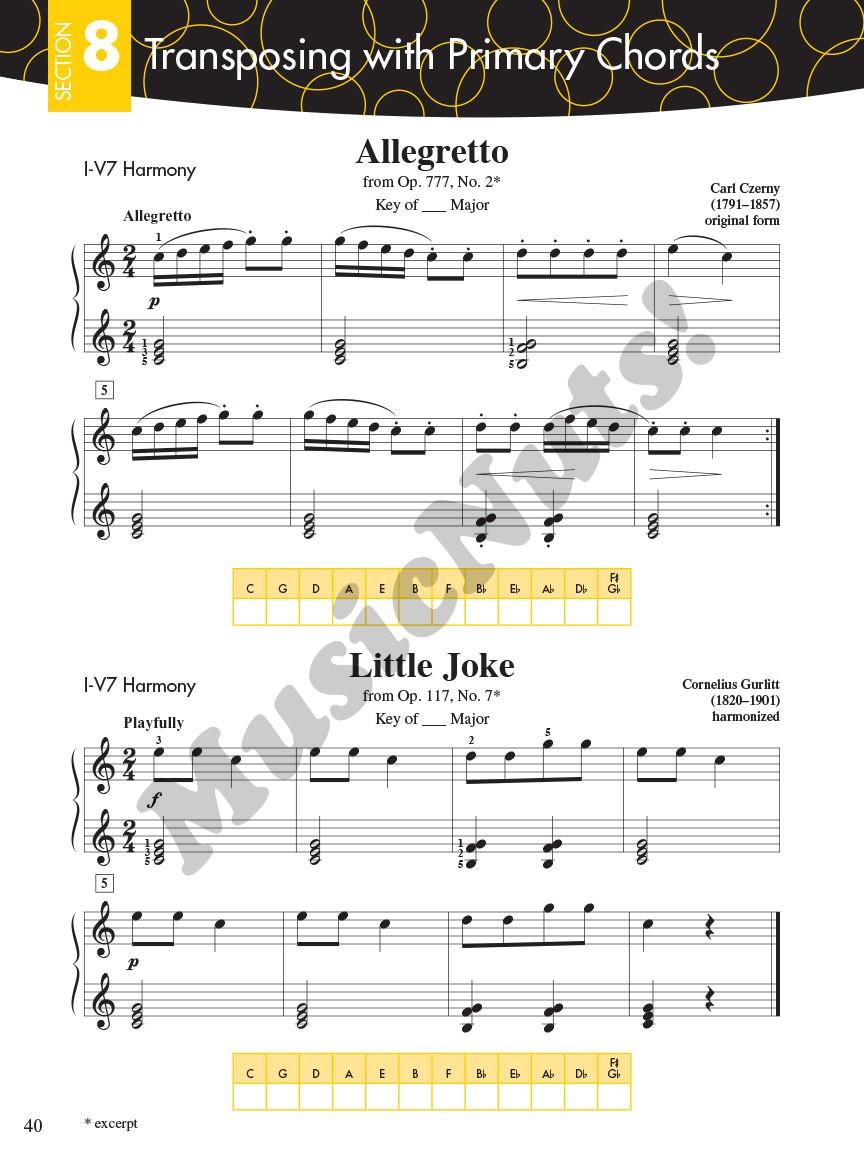 Playing 5-finger scales has significant value for early-level pianists. This innovative book helps students chart progress through all major and minor 5-finger scales, cross-hand arpeggios, and primary chords. Engaging teacher duets for each key are used for scale exercises. Students also enjoy improvisation activities for each key with creative prompts to inspire imagery, character, and tempo.