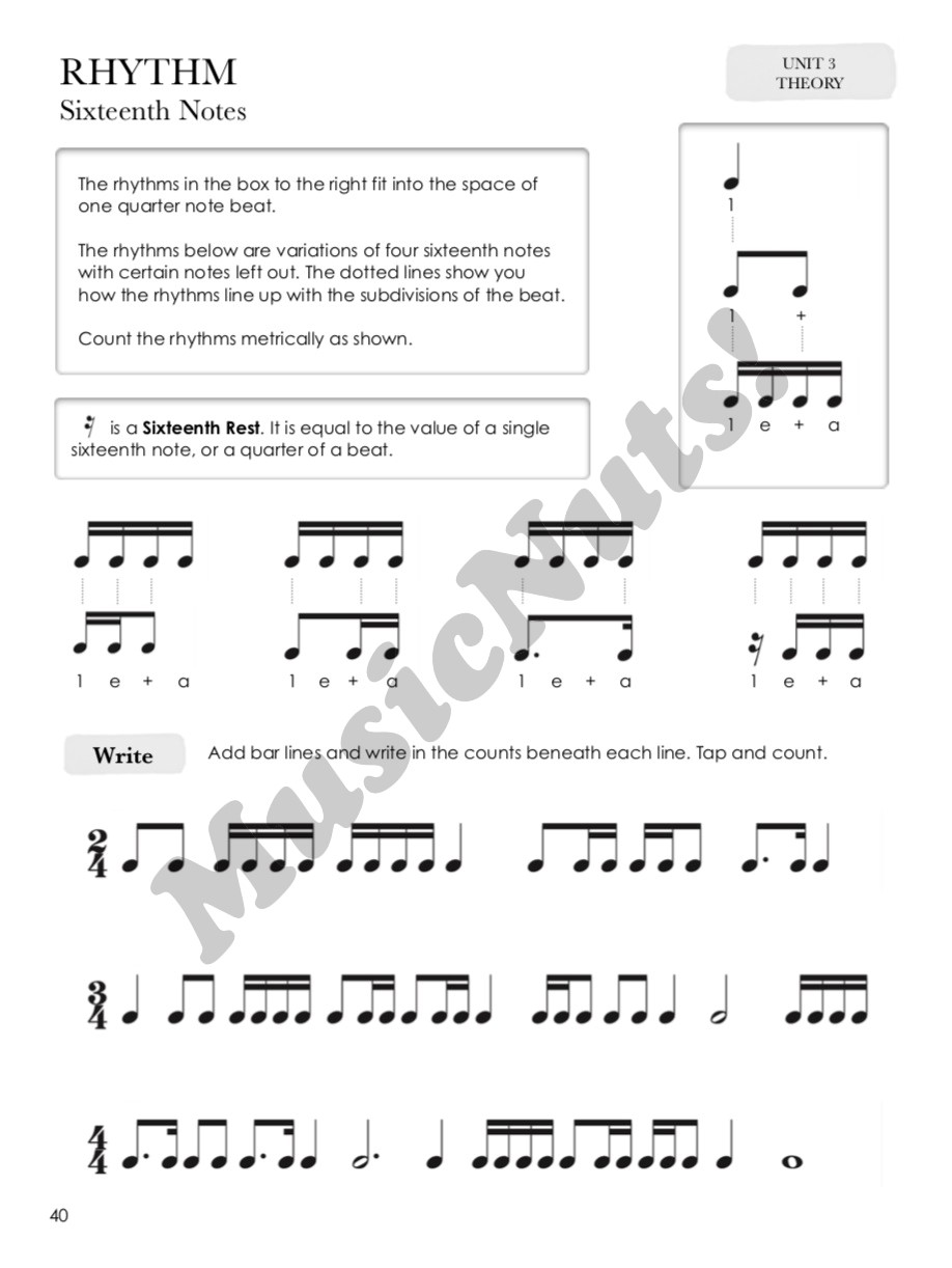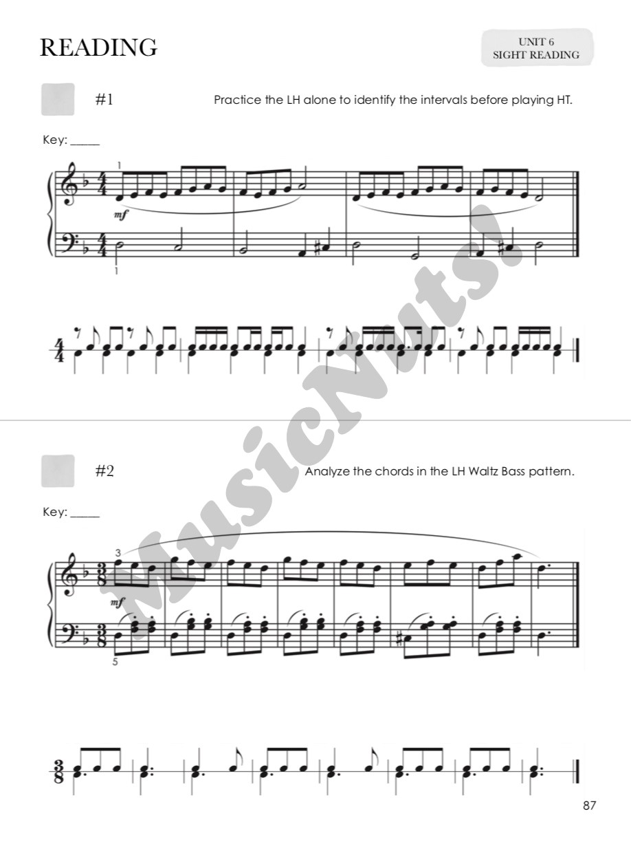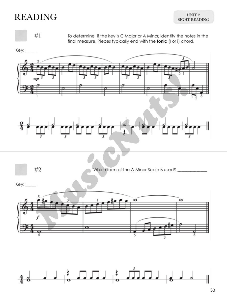 Sight Reading & Theory Book 3 builds on the foundation established in the second level. Students continue to increase their musicianship skills through the study of theory and sight reading. This book pairs with Repertoire & Technique Book 3. Sight Reading & Theory Book 3 corresponds with Repertoire & Technique Book 3 but may also stand alone as a sight reading supplement. Theory concepts in each unit are followed by melodies and rhythms that provide substantial practice with reading notation. Analysis suggestions are provided for each example to aid students in the development of analytical skills.