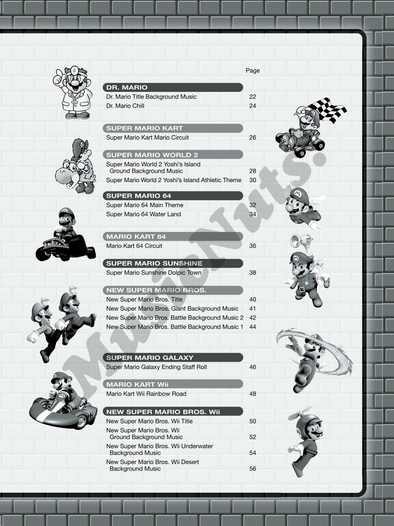 After decades of anticipation, Alfred Music is proud to release the officially licensed, collectible sheet music companion folios to the Super Mario Bros.™ video game series. This collection of 34 themes is arranged for solo guitar performance with full notation and TAB. Each song is arranged in easy guitar keys at an easy–intermediate level, and all pieces are suitable for recitals, concerts, and solo performances. Beloved by generations of gamers around the globe, these instantly recognizable melodies are drawn from more than two decades of Nintendo® video games, from Koji Kondo’s iconic “Super Mario Bros.™ Ground Background Music” to the New Super Mario Bros.™ Wii™ themes. Adding to the fun, graphics from the corresponding games grace each page of the sheet music. Impress friends, family, and audiences of all ages by playing from this magnificent collection, which makes a great gift for every guitarist.