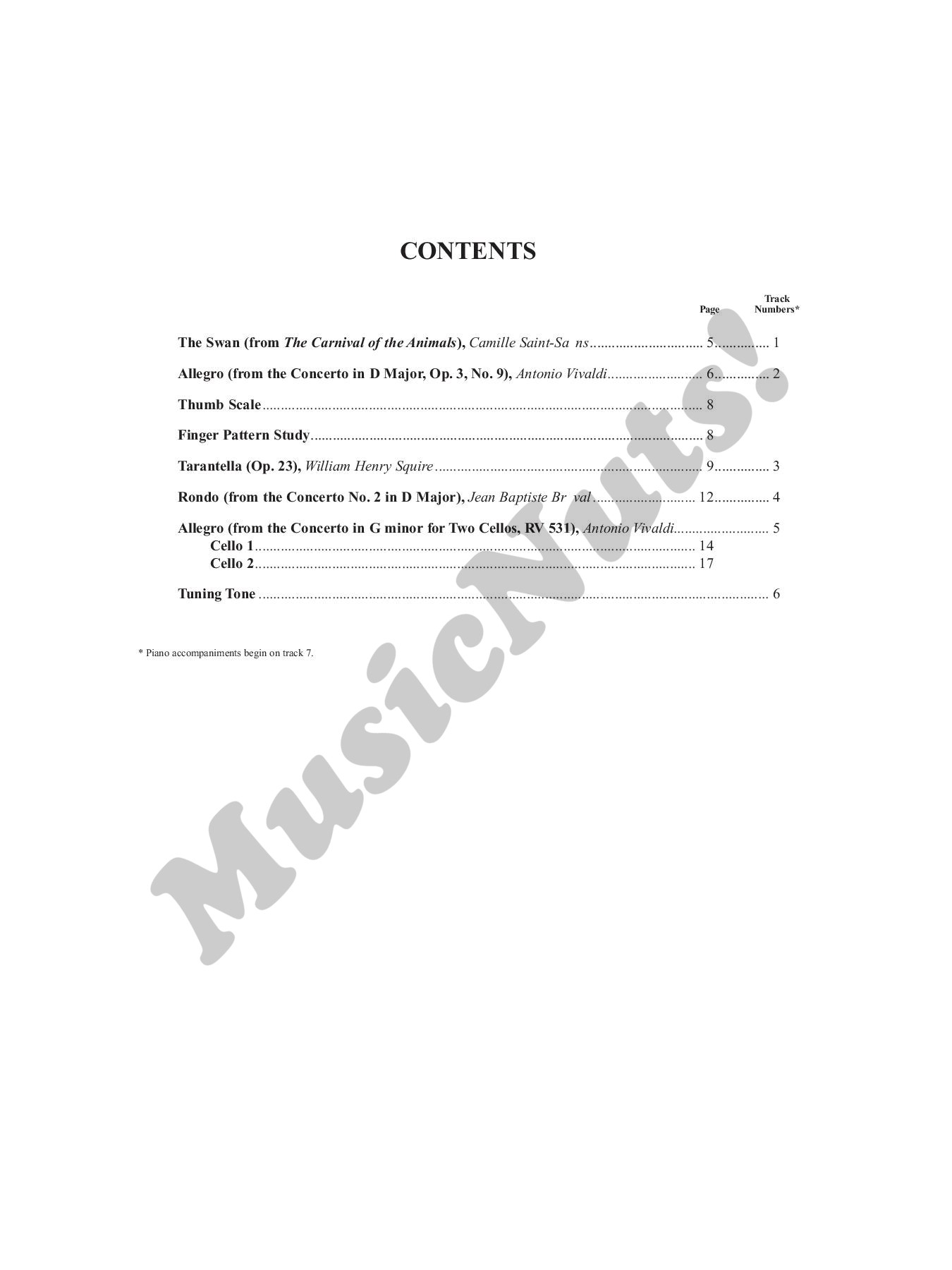 The Suzuki Method of Talent Education is based on Shinichi Suzuki’s view that every child is born with ability,and that people are the product of their environment. According to Shinichi Suzuki, a world-renowned violinist and teacher, the greatest joy an adult can know comes from developing a child’s potential so he/she can express all that is harmonious and best in human beings. Students are taught using the “mother-tongue” approach. Each series of books for a particular instrument in the Suzuki Method is considered a Suzuki music school, such as the Suzuki Cello School. Suzuki lessons are generally given in a private studio setting with additional group lessons. The student listens to the recordings and works with their Suzuki cello teacher to develop their potential as a musician and as a person. This Suzuki book is integral for Suzuki cello lessons. Titles: The Swan from Carnival of the Animals (Saint-Saëns) * Allegro from Concerto in D Major, Op. 3, No. 9 (Vivaldi) * Tarantella Op. 23 (Squire) * Rondo from Concerto No. 2 in D Major (Breval) * Allegro from Concerto in G Minor for Two Cellos, RV 531 (Vivaldi).