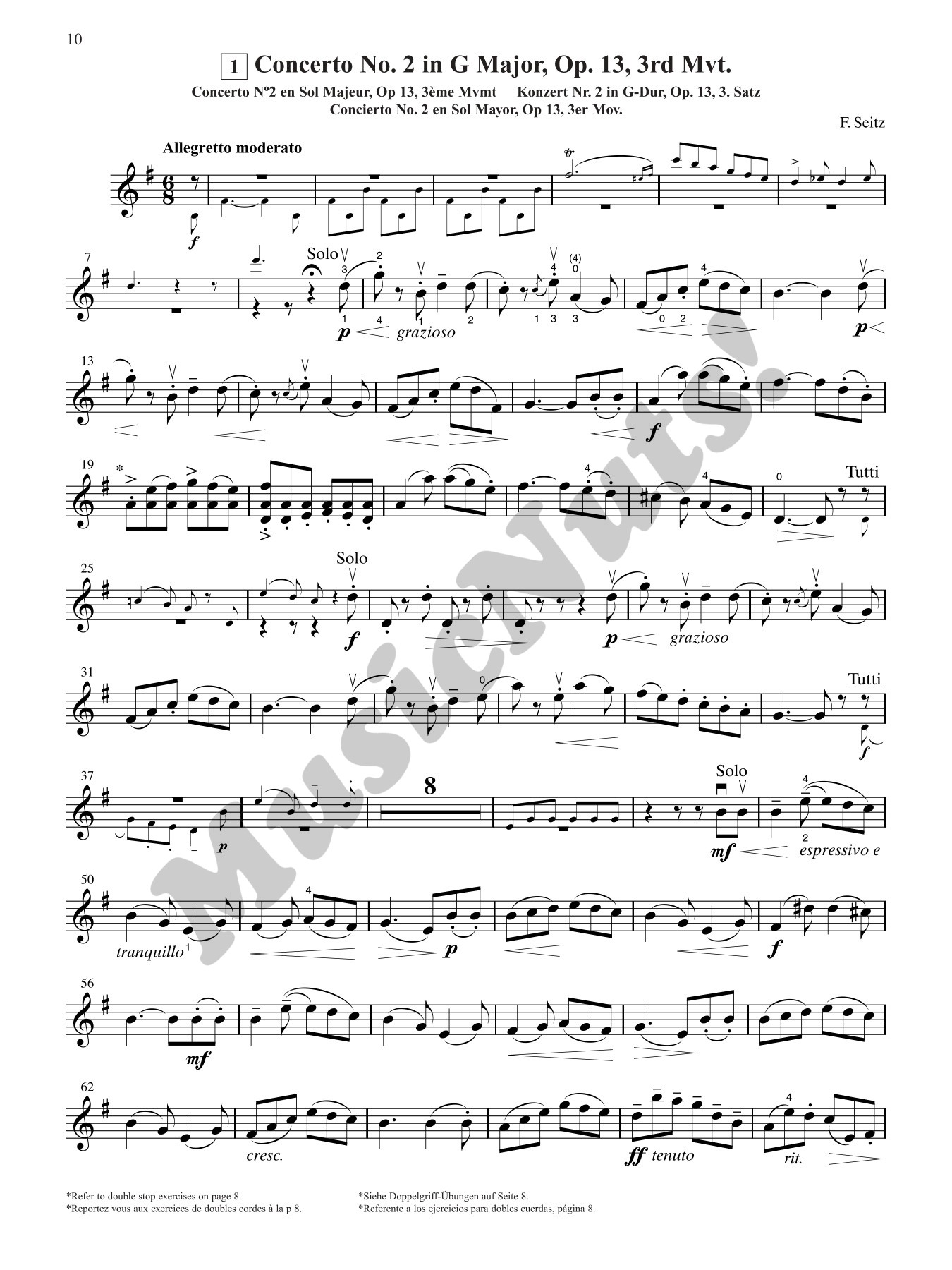 Titles: Lullaby (Tonalization) ( F. Schubert); Lullaby (Tonalization) (J. Brahms); Concerto No. 2 in G Major, Op. 13, 3rd Movement (F. Seitz); Concerto No. 5 in D Major, Op. 22, 1st Movement (F. Seitz); Concerto No. 5 in D Major, Op. 22, 3rd Movement (F. Seitz); Concerto in A Minor, 1st Movement, Op. 3, No. 6 (A. Vivaldi/T. Nachez); Concerto in A Minor, 3rd Movement, Op. 3, No. 6 (A. Vivaldi/T. Nachez); Perpetual Motion, “Little Suite No. 6” (K. Bohm); Concerto for Two Violins in D Minor, BWV 1043, 1st Movement, Violin II (J. S. Bach).