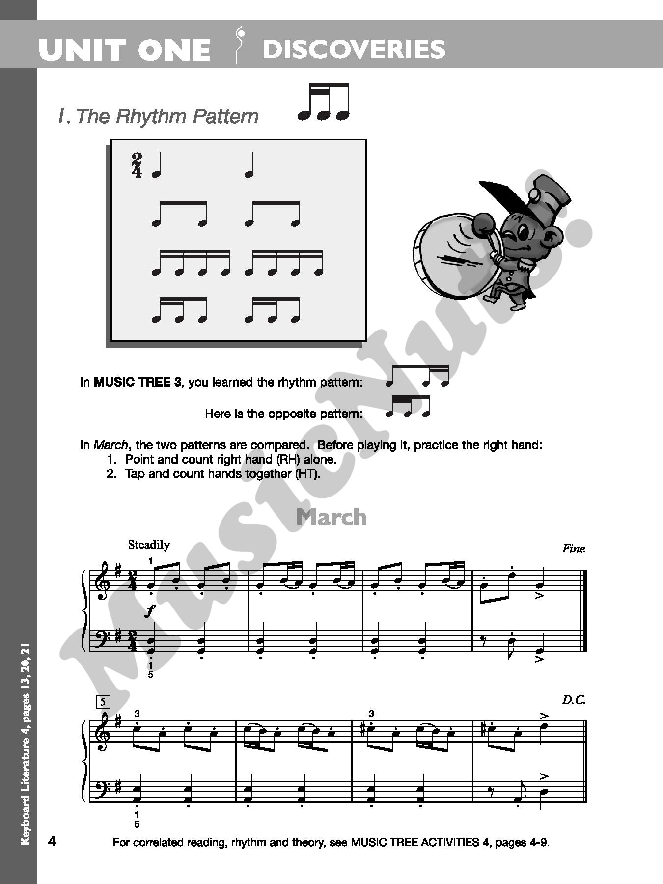 In a wealth of delightful discovery pieces and repertoire, The Music Tree Part 4 continues to elaborate on topics covered in The Music Tree Part 3 — syncopation, triads and inversions, blues, and modes — while at the same time offering new challenges.